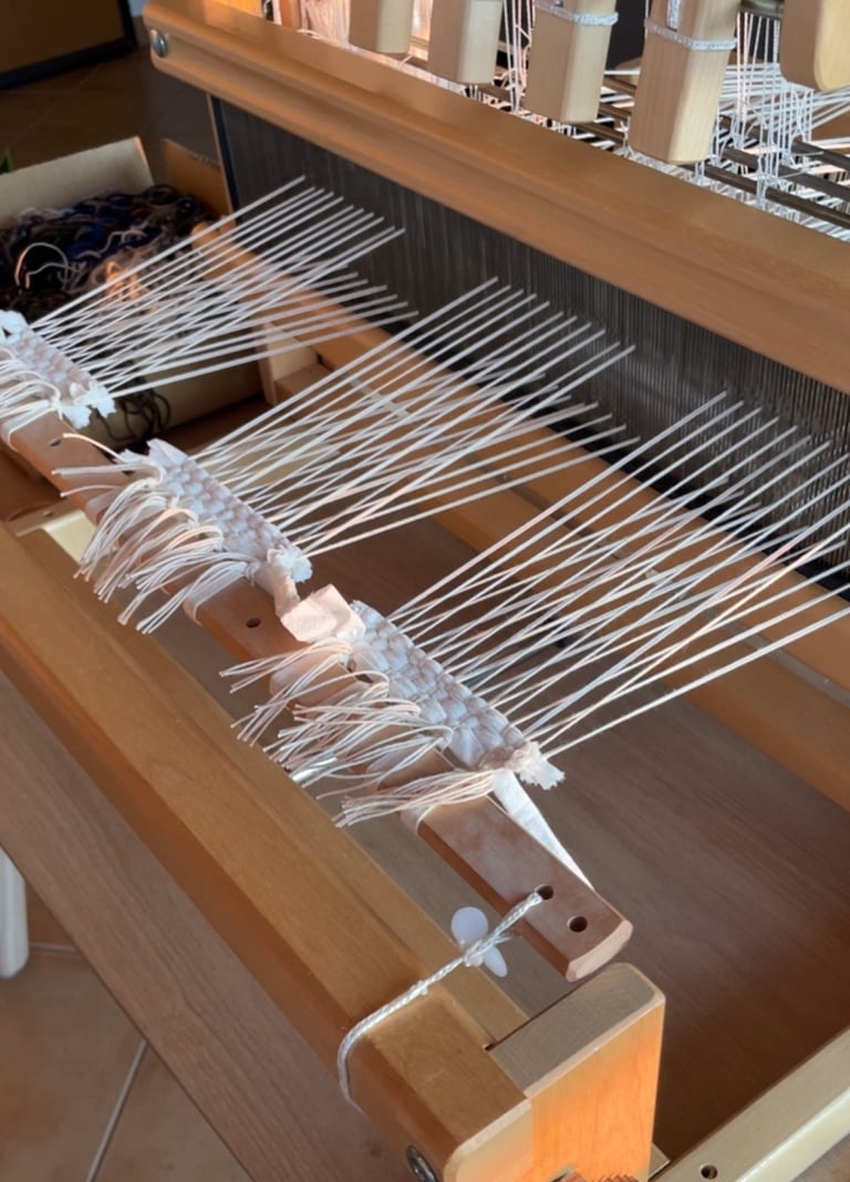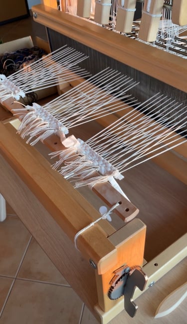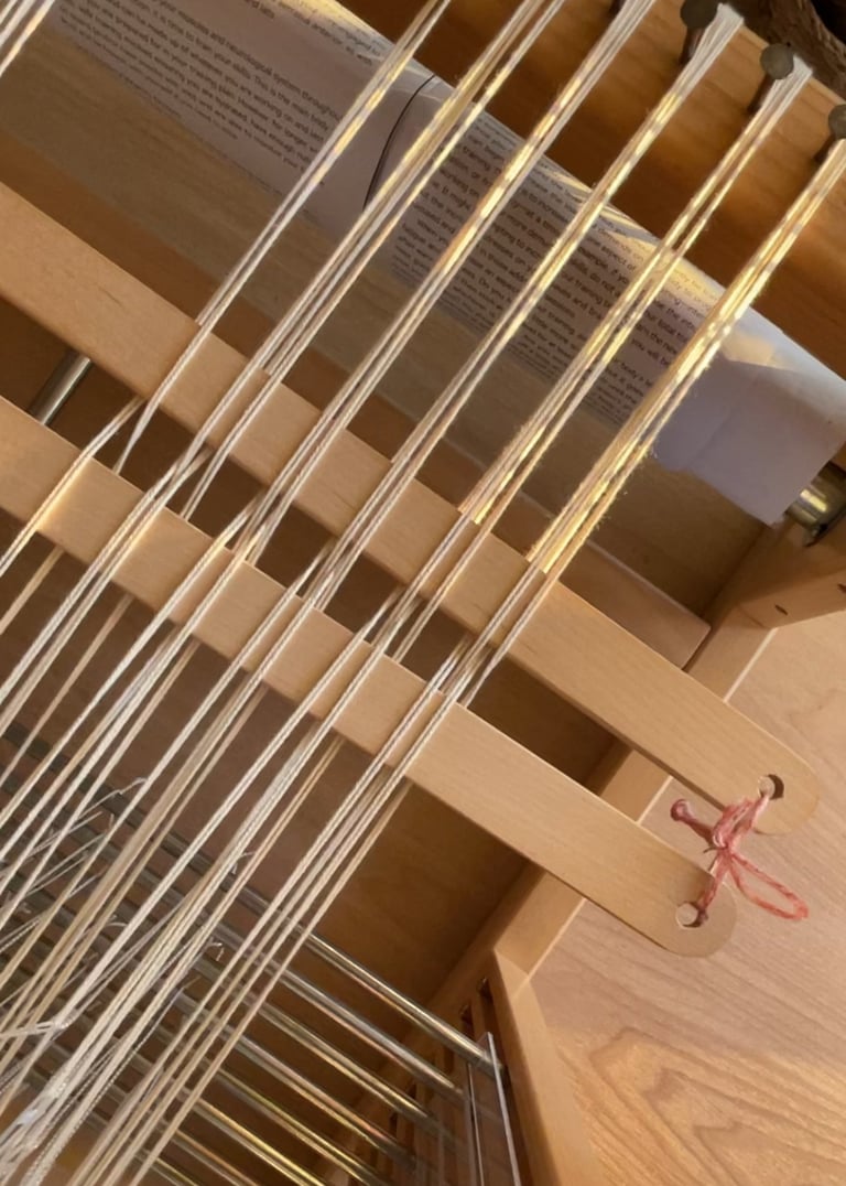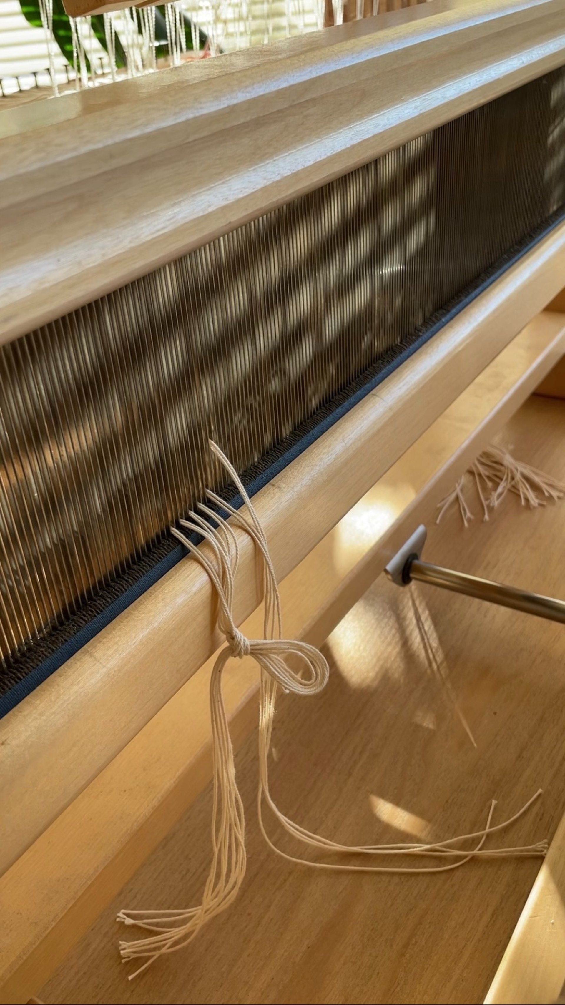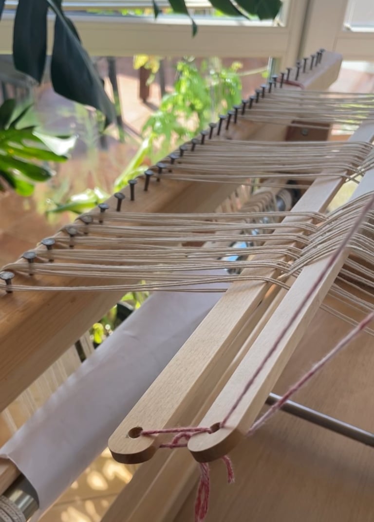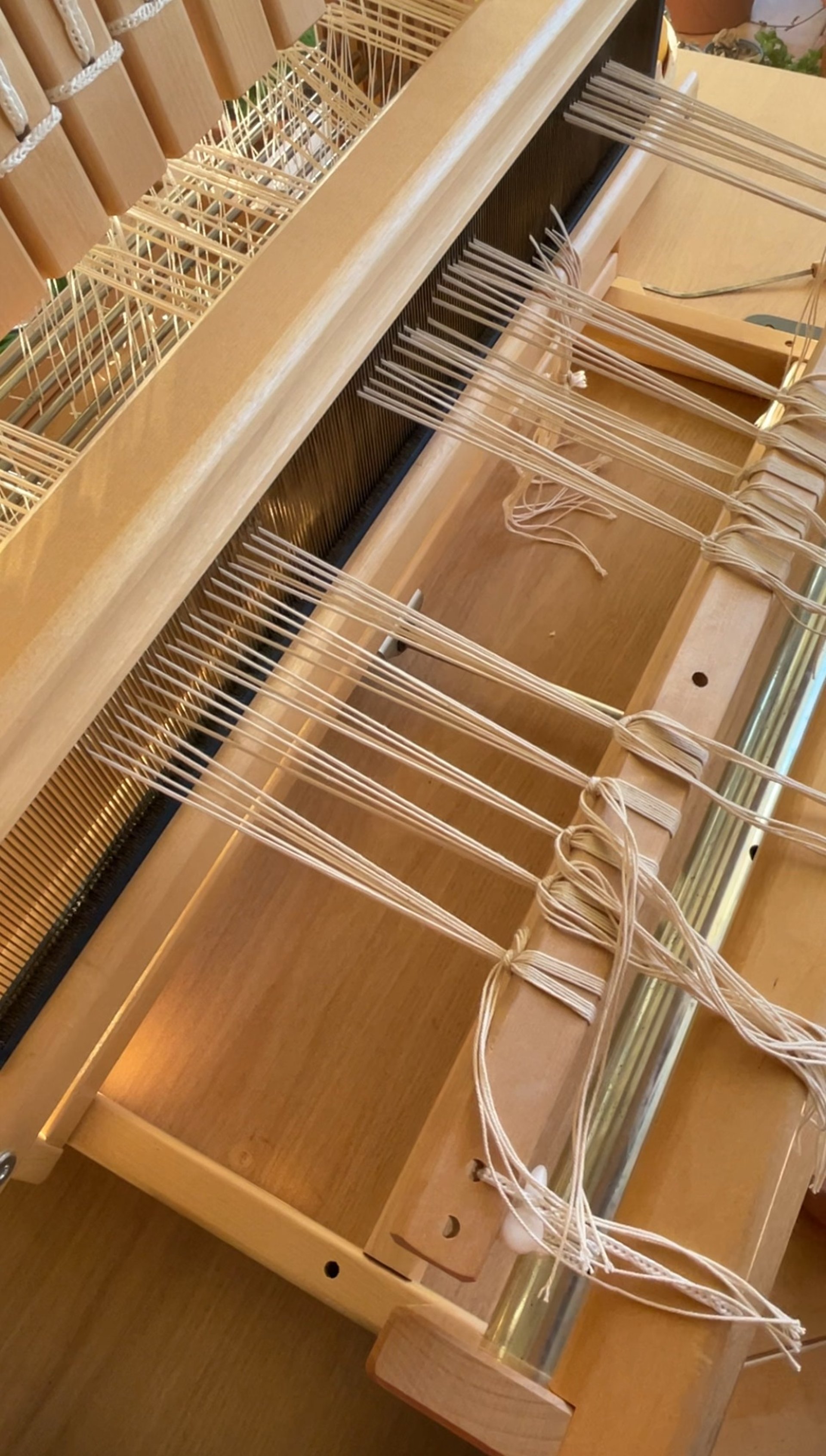 Once the warp is fully wound, it’s time for threading and tying on — the final stages before weaving begins.