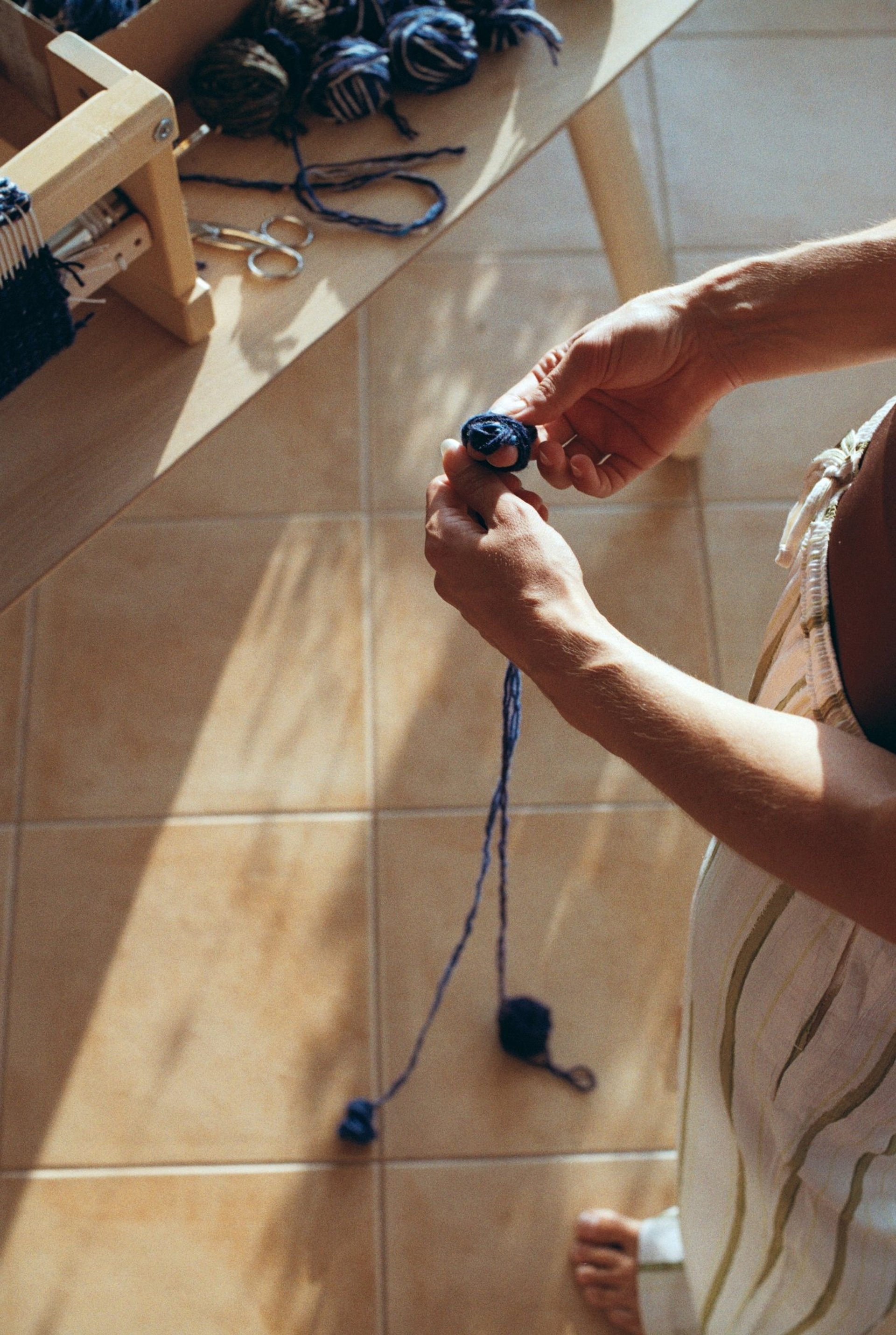 Our zero waste approach isn’t only about avoiding waste — it’s about seeing possibility in limitation. Scrap yarn can become small woven samples for testing colors, patterns, and structures before a larger project begins. These experiments often spark unexpected ideas, influencing the design of future collections. Sometimes, the scraps grow into something much bigger — entirely new pieces, rich in texture and layered with the history of past weavings.